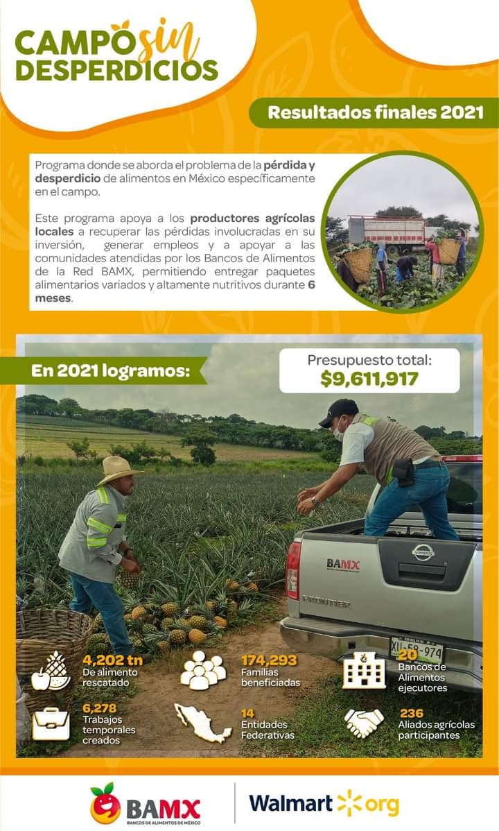 Este Programa apoya a los PRODUCTORES AGRÍCOLAS LOCALES a recuperar las pérdidas involucradas en su inversión, generar empleos y a apoyar a las comunidades atendidas por los Bancos de Alimentos de la Red BAMX, permitiendo entregar paquetes alimentarios variados y altamente nutritivos durante 6 meses.
